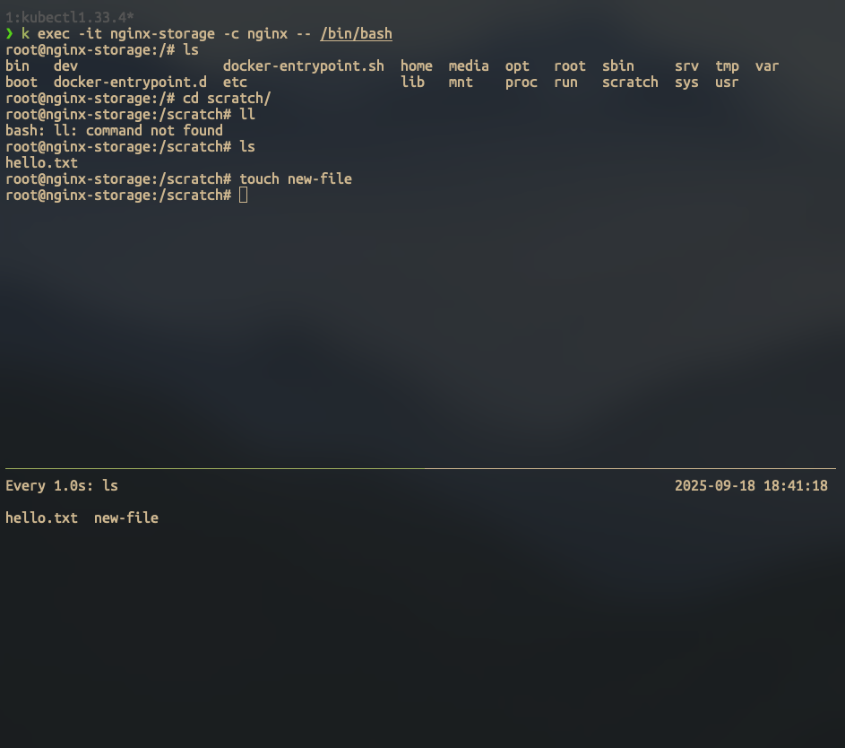 - the busybox container is able to list and read the files created by the nginx container in the pod