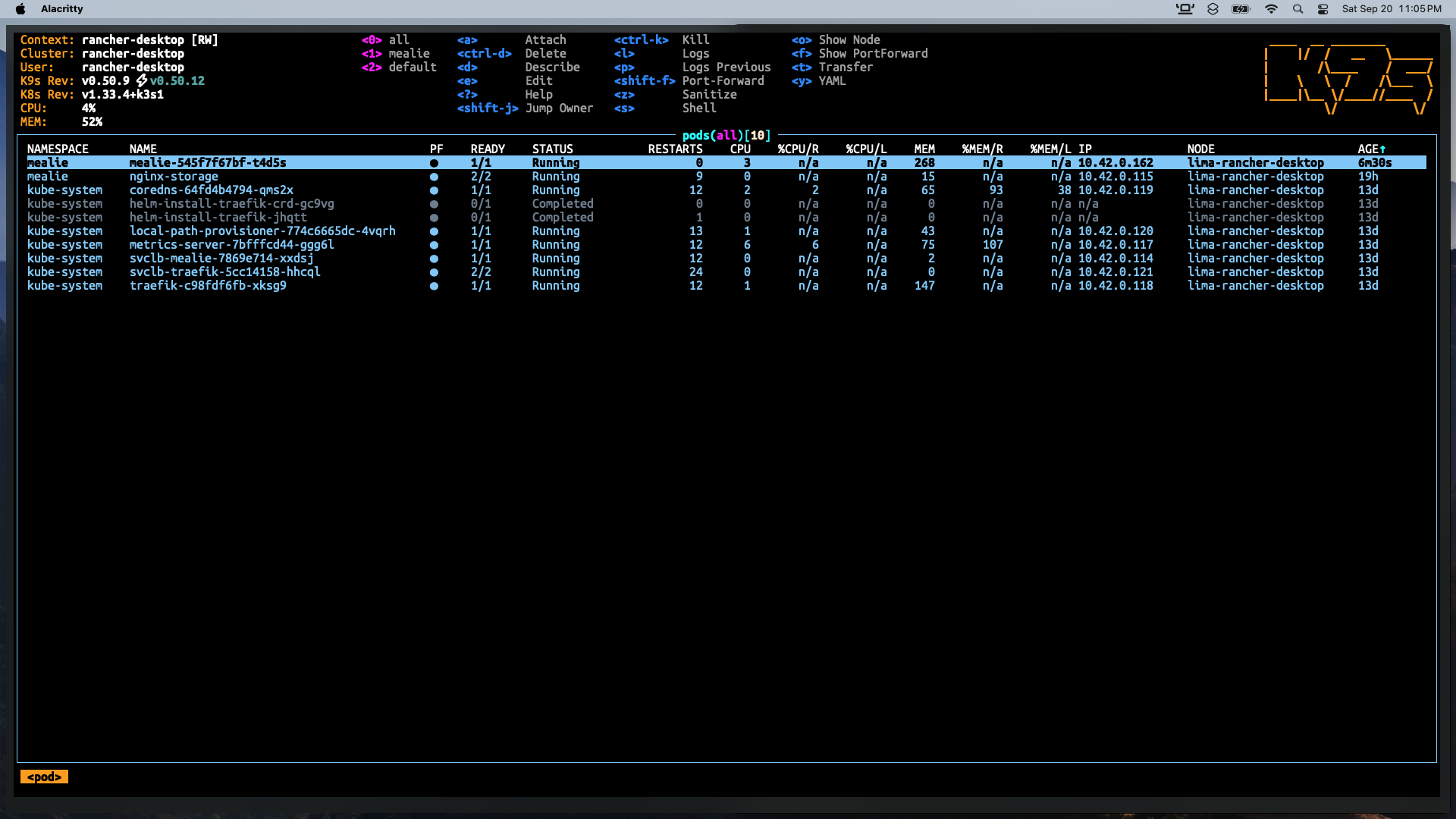 - press ālā while on any pod to see its logs